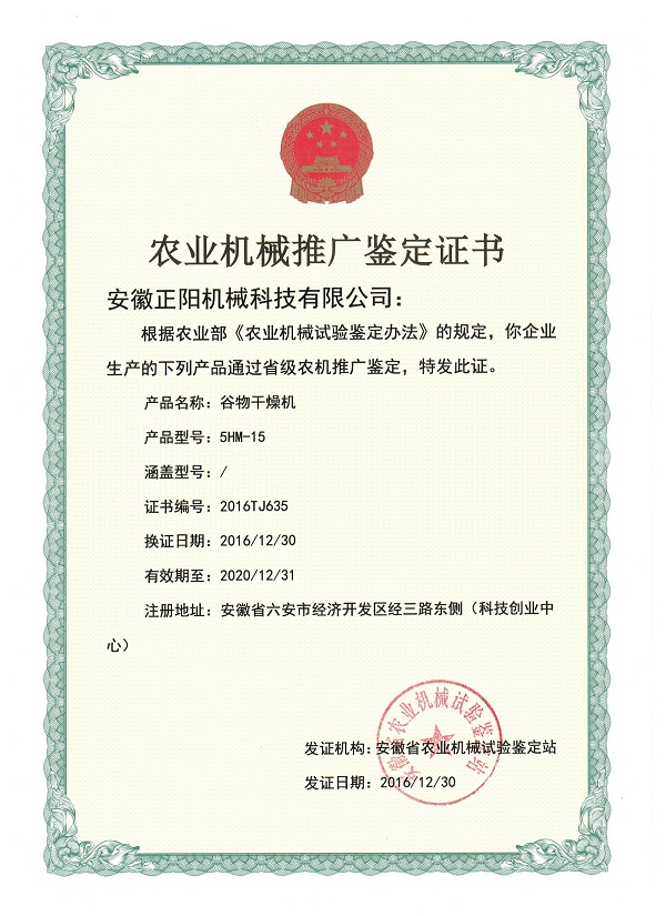 農(nóng)業(yè)機械推廣鑒定證書