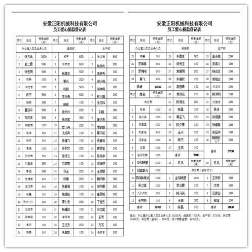 正陽(yáng)公司員工捐款名單